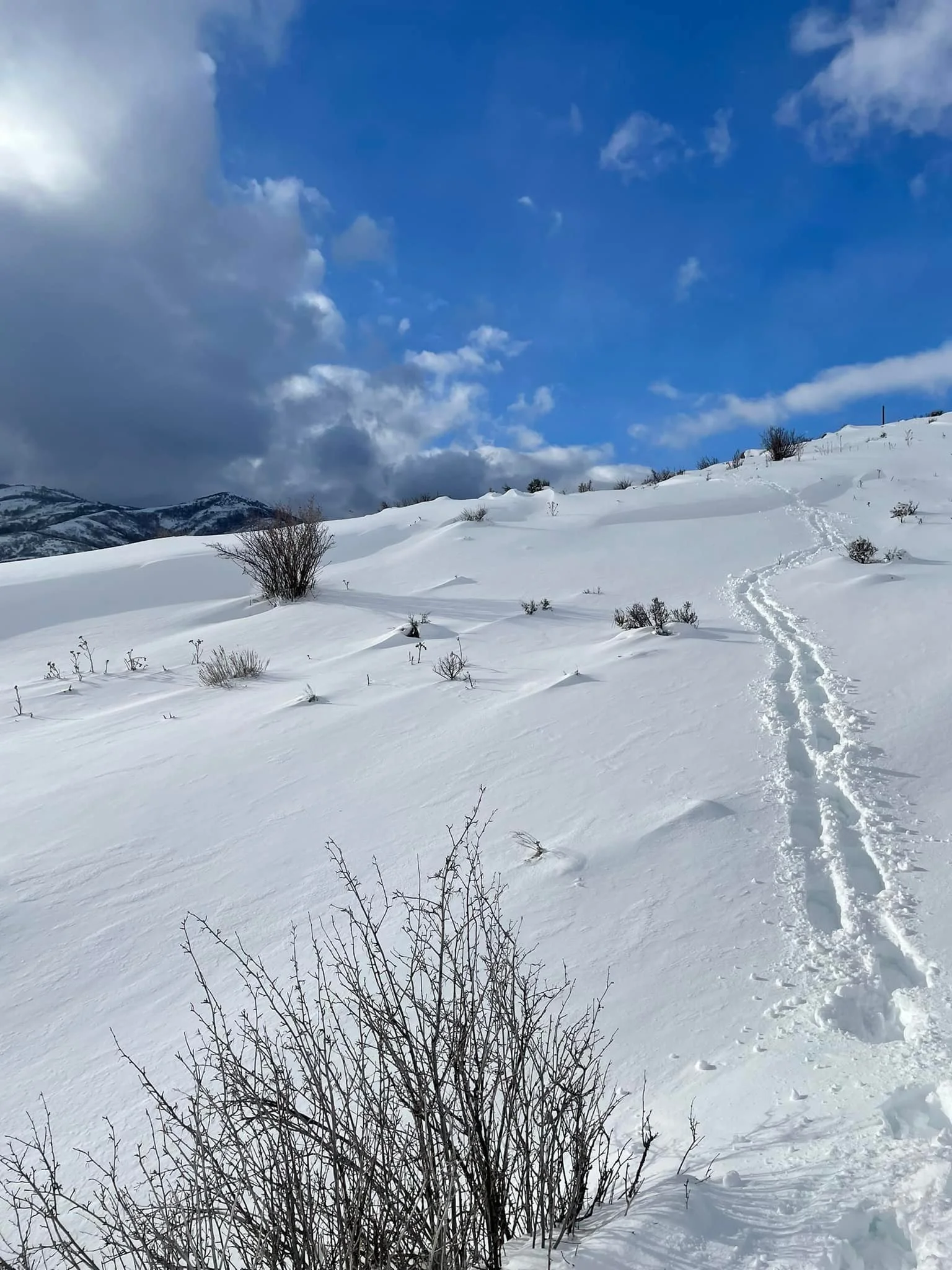 Look at the first picture, taken 1-2 days after 1-2 feet (30-60 cm) of new snow. I was trying to open up a path with my hiking shoes. Every step I fell in, with snow to my knee or even to my hip. Every step was a fight - I was sweating profusely even with the cold air and my mountain gear. During one trip, I fought through the challenge and managed to achieve my goal and complete the hike. During a trip after the next snow, I had to turn around. Frankly, I just could not do it. It was too hard.